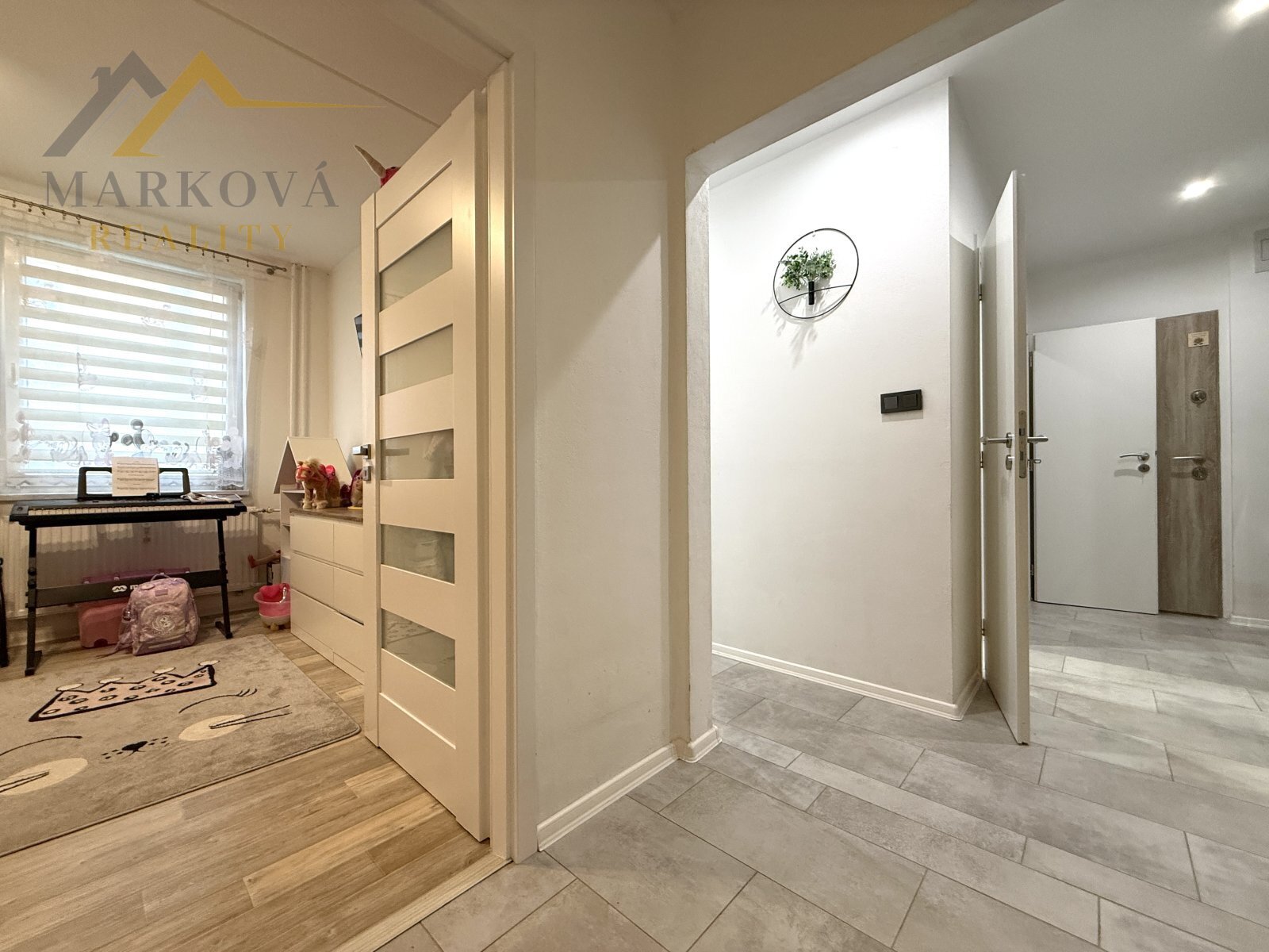 Dále byt nabízí dětský pokoj, ložnici a obývací pokoj se vstupem na lodžii. Ložnice jsou neprůchozí, což zajišťuje maximální soukromí. Okna ve všech místnostech jsou opatřena integrovanými sítěmi proti hmyzu, včetně dveří na lodžii.