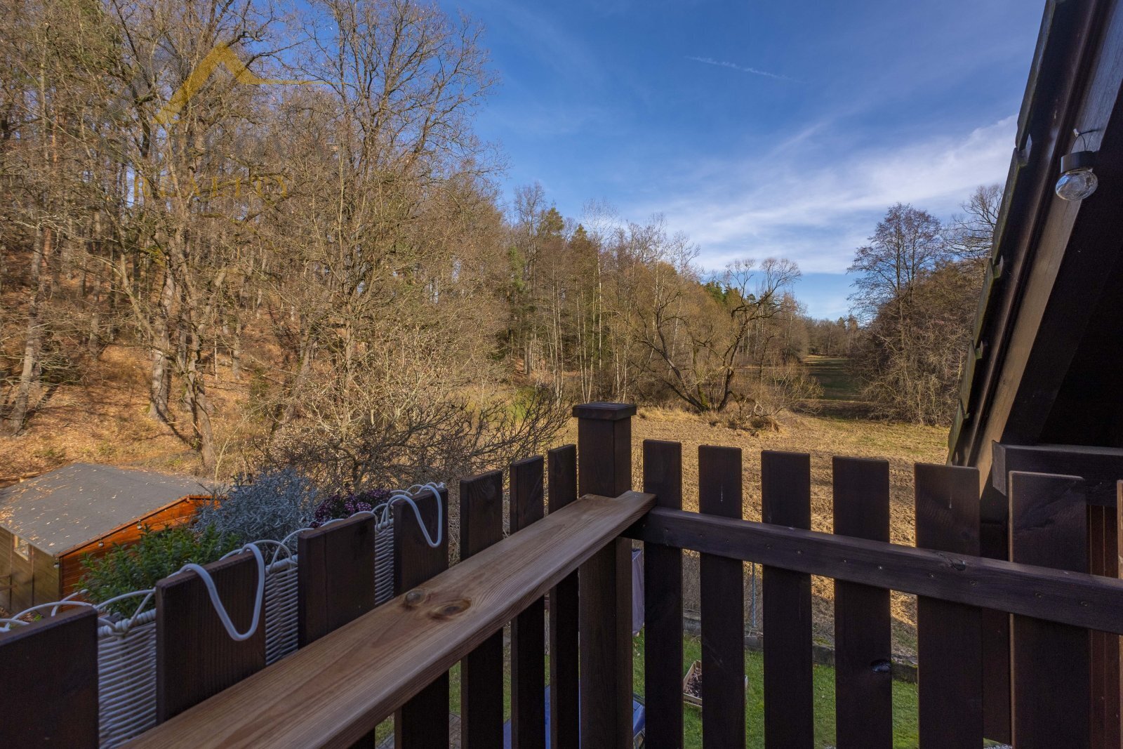 Z obývacího pokoje je přímý vstup na balkon s výhledem do zeleně, kde si můžete vychutnat ranní kávu nebo klidný večer po práci.