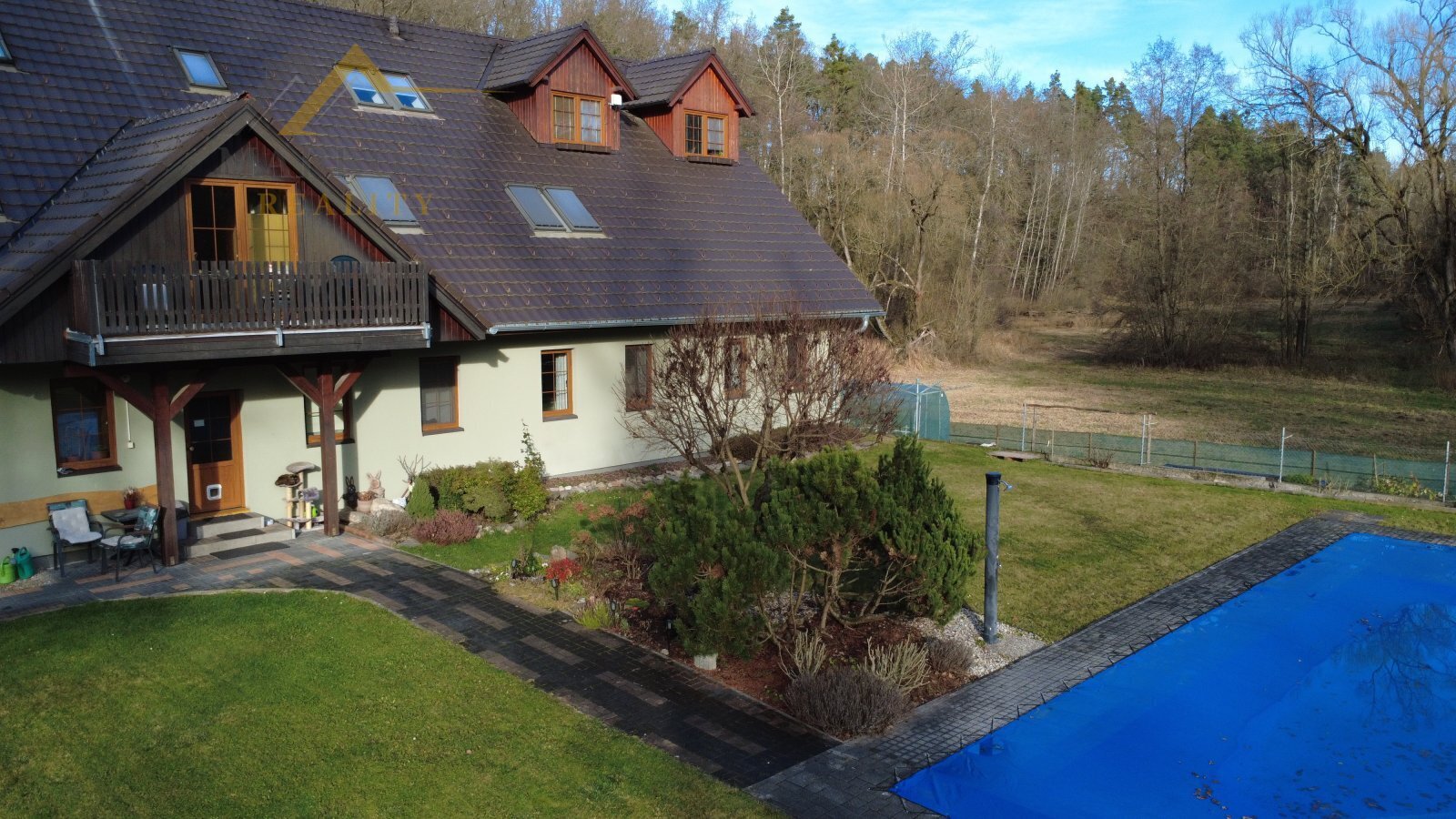 Areál z roku 2007 se nachází na okraji obce, mimo hustou zástavbu, obklopený přírodou a otevřenou krajinou. Prostředí působí velmi komorně a příjemně – spíše jako menší rezidenční resort než klasický bytový dům. Součástí společných pozemků o rozloze 3 355 m² je také velký bazén o ploše 116 m², relaxační zóny v zeleni, úložné prostory i vlastní parkovací stání.