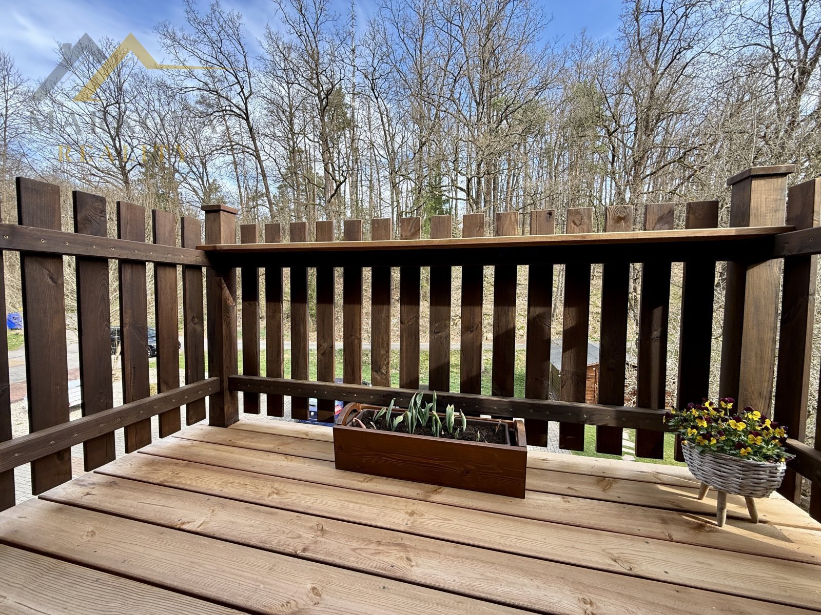Z obývacího pokoje je přímý vstup na balkon s výhledem do zeleně, kde si můžete vychutnat ranní kávu nebo klidný večer po práci.