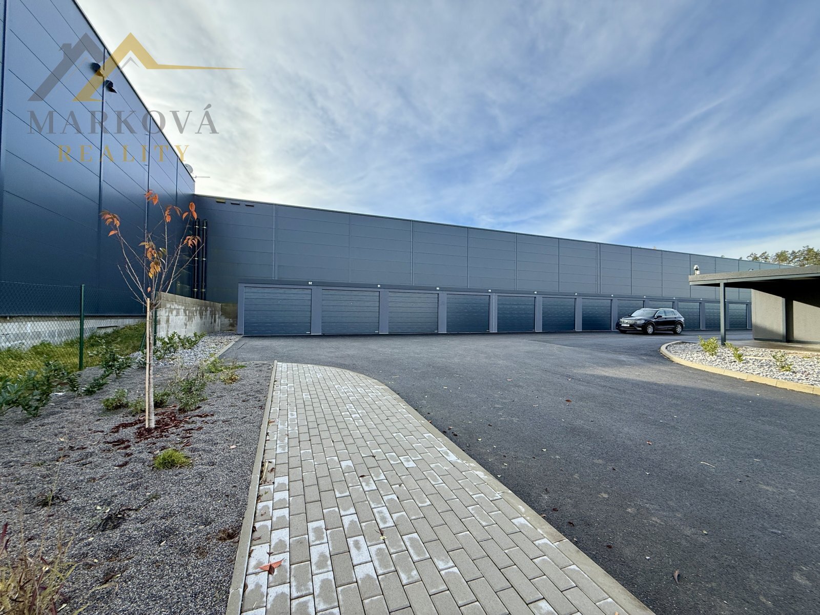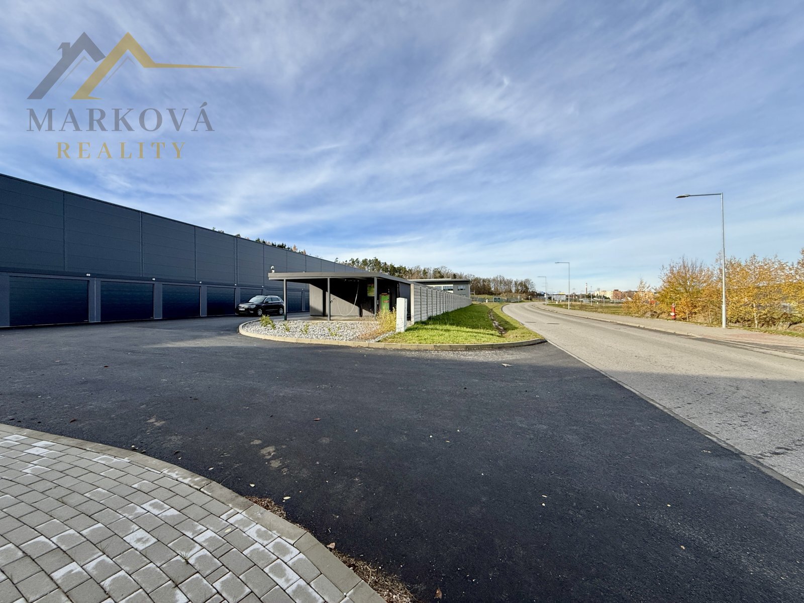 Komunikace mezi jednotlivými garážemi má šíři 9 metrů, díky čemuž pohodlně zaparkujete i větším vozidlem nebo transportérem.