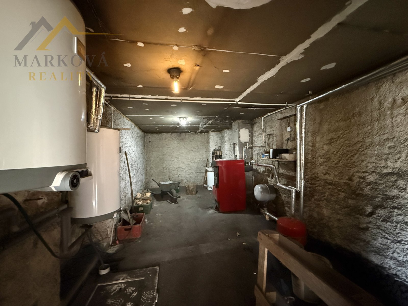 Vytápění domu je řešeno kotlem na tuhá paliva o výkonu 22 kW, třída C. Výhodou je nově vyvložkovaný komín a v obývacím pokoji navíc krbová kamna, která vytvářejí příjemnou atmosféru domova. Součástí domu je také kotelna s dostatkem místa pro uskladnění uhlí, garáž a další skladovací prostory.