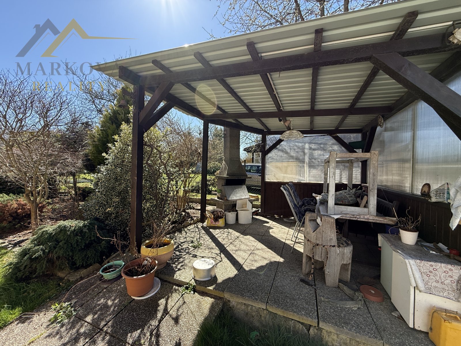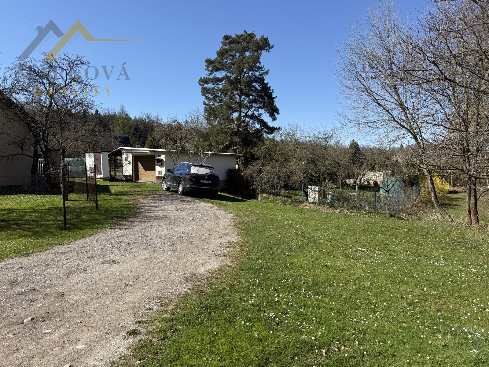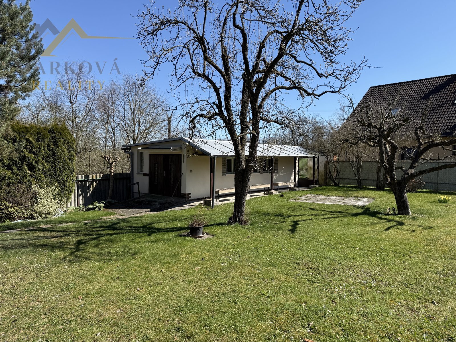 Pozemky dohromady vytvářejí rovinatou, pečlivě udržovanou okrasnou zahradu se vzrostlými stromy, která zajišťuje naprosté soukromí a příjemnou atmosféru pro každodenní život i odpočinek.