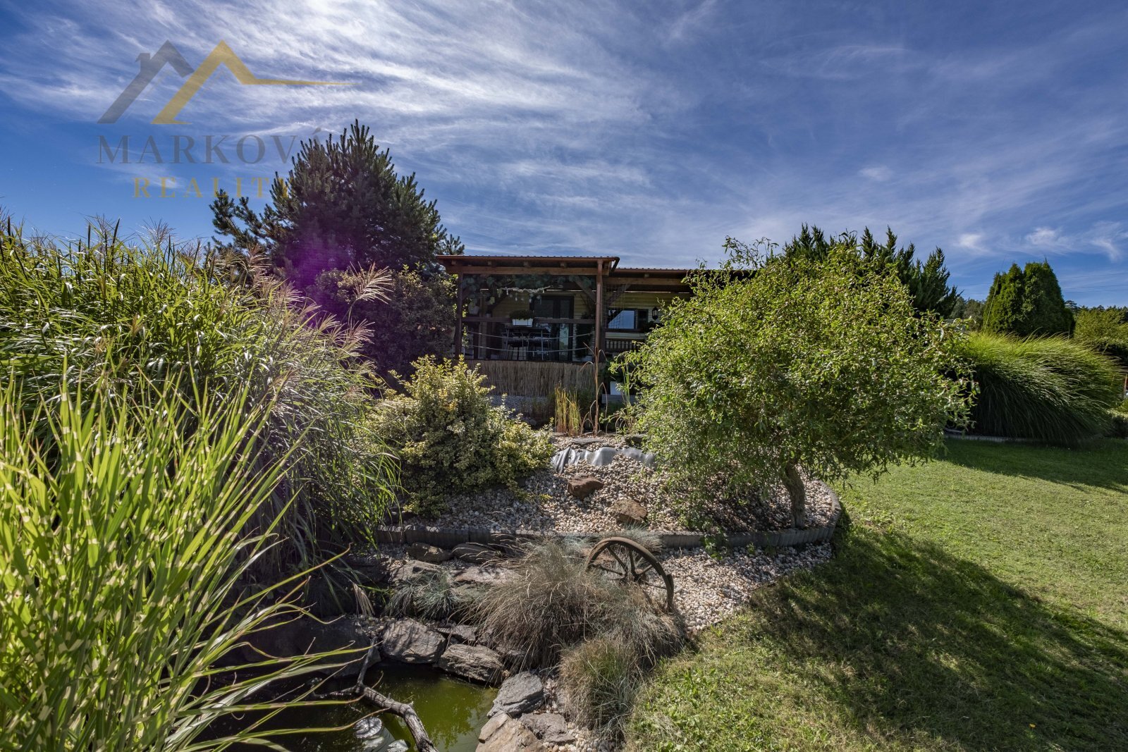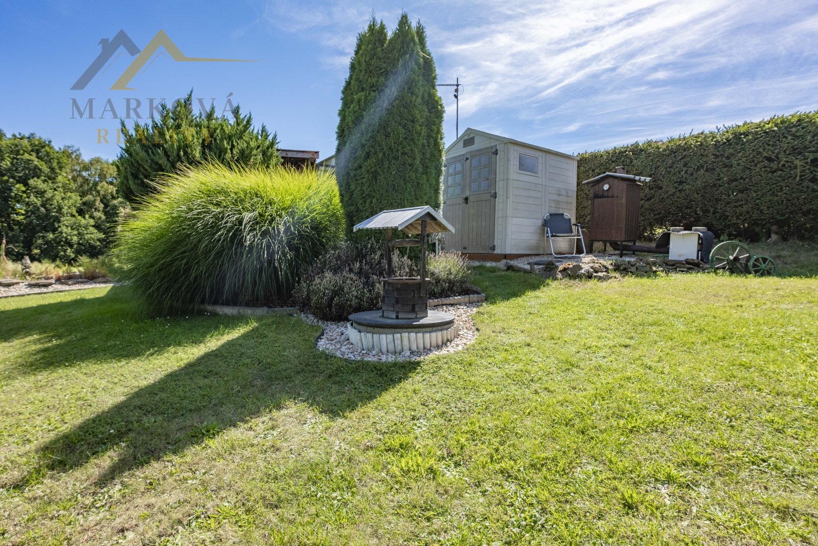Pozemek je pečlivě upravený a majitelé zde vytvořili okrasnou zahradu s jezírkem s filtrací a rybkami. O soukromí se stará vzrostlý živý plot, nechybí ohniště, vlastní udírna, zahradní domek ani venkovní posezení s výhledem na jezírko a okolní přírodu. Velkým benefitem je také oficiální 30 m hluboký vrt, vyvážecí septik a vlastní elektroměr.