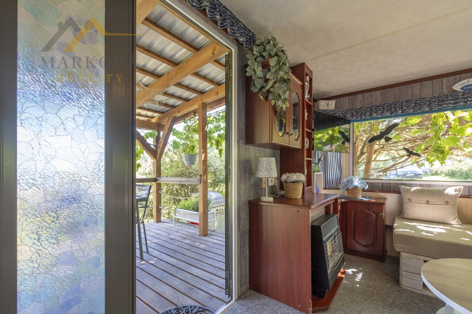 Na základě oficiálního povolení je zde umístěn moderní mobilheim v dispozici 3+kk. Podlahová plocha mobilheimu činí 40,8 m². Nabízí prostorný obývací pokoj s plnohodnotnou kuchyní, ložnici, jeden menší pokoj využívaný jako dětský pokoj nebo šatna, dále koupelnu se sprchovým koutem a toaletou a komoru pro uložení věcí. Z obývací části se vstupuje na kryté posezení porostlé vinnou révou – ideální místo k relaxaci nejen v horkých letních dnech.