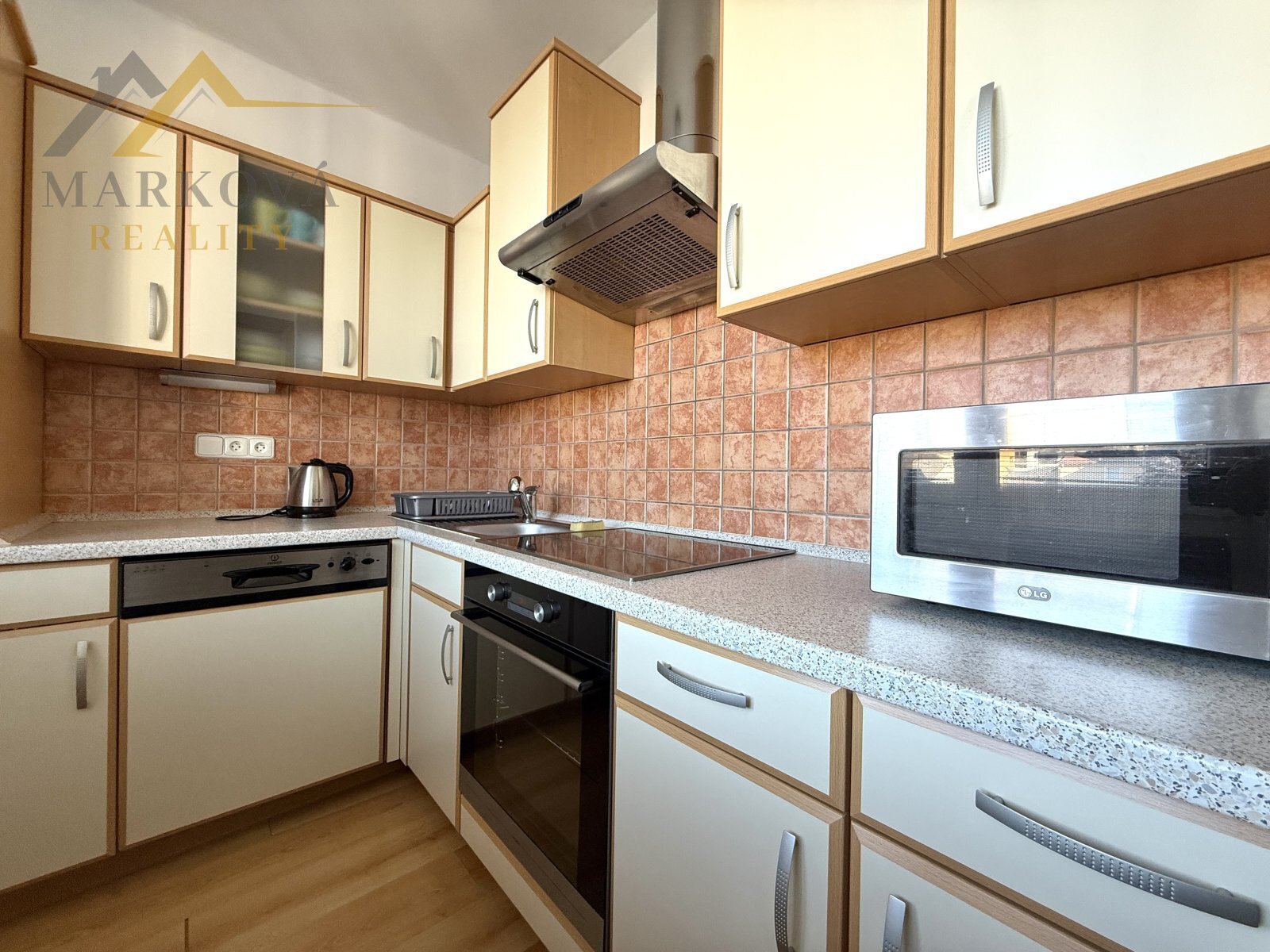 Nabízíme k pronájmu byt o dispozici 2+1 s balkonem, o podlahové ploše 46,8 m², který se nachází v třetím patře bytového domu.
